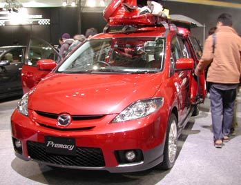 次は市販車、新型プレマシーである。オートサロンでは場違いのような気のする車だが、自動車メーカー各社ともノーマル車の出品が多かった。ベース車両として検討してくださいということなんだろう。