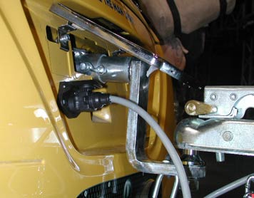 ヒッチメンバーはナンバープレートのところから出ていた。ケーブルは、キャリアについているブレーキランプ等を点灯させるためのものだ。