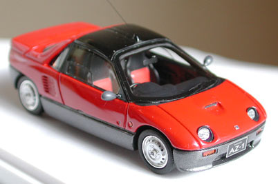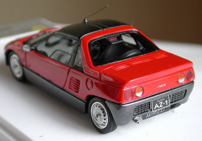 最後はMAKE UPの写真とほぼ同じ角度で撮影したものとの比較。やはり印象がまるで違う。修正の入ったものが量産化されたのだろうか。実物の方はボンネット側が全体的に上にあがっているように見える。これは車が台座に2カ所ビス留めされているうち、前方側が後方側より高く取り付けられているためであり、モデルが悪いのではない。