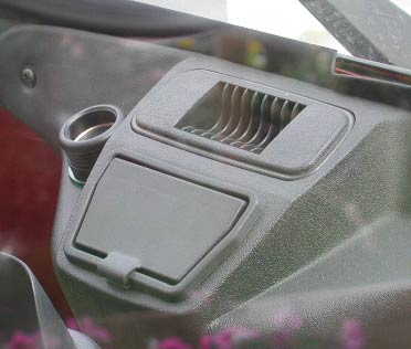 普通の車ならインパネに該当する部分。こんな車なのに、ちゃんと灰皿とシガーライターまでついている。よくよく考えてみると、この車はいったい何Vで動くのだろうか。原付だから6Vかな。それともシガーライターがついているから12Vかな。