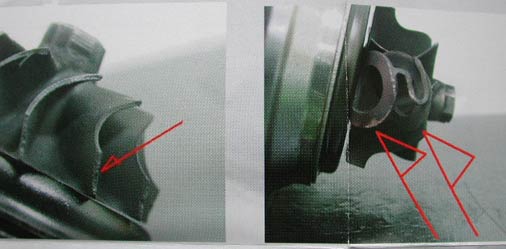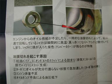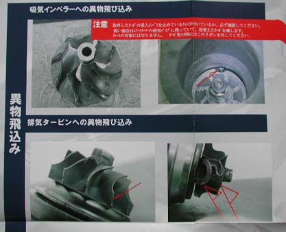 タービンの故障原因などの説明書きがあったので紹介したい。去年は展示だけだったので、具体的な説明書きがあるのは有り難い。異物が噛み込んだタービンの例である。