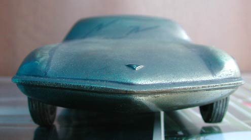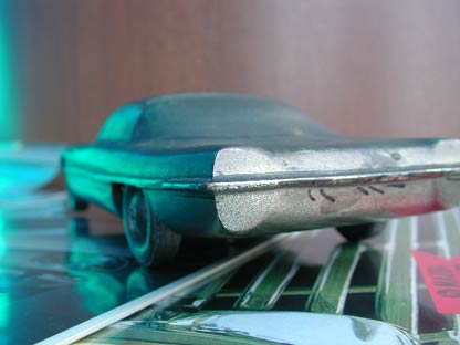 コスモスポーツらしき形状はしているが、実物と比較すると明らかに全長が長い。またライト類もない。ドアとフレームの隙間も再現されていない。