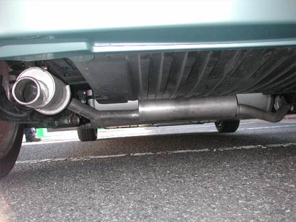 気になる排気管周りをみてみた。なぜかサイレンサーみたいなタイコがある。普通の車で言うならプリサイレンサー(AZ−1にはついてない)くらいの大きさだ。何らかの役割があるのだろうか?