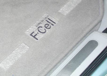 ベンツの意地。フロアマットに燃料電池車の表示があった。ここまでやっていたのはベンツだけ。