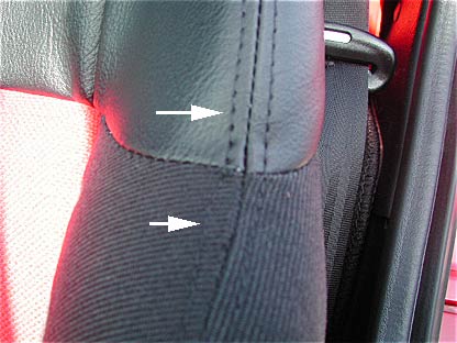 ちょっとピンぼけだが、縫い目もばっちり合っている。シート表皮補修の参考に。