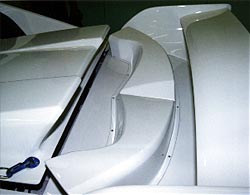 後ろしか写っていないが、これはMR2である。このエアロパーツは、ガレージ福井SPLのもの。同じMRのAZ−1の冷却対策として使えそうなアイディアだ。しかし、これをそのままつけることは明らかに不可能だ。
