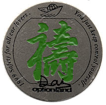 雑誌OPTIONのオプションランドが出展した走りの神社。Tシャツやお守りなどいろいろなものが売られていた。ここでは、グッズの販売の他、自動車の環境について考えるコーナーなどがあり、模型を使って「車が走ると環境に対してこんな悪いことがある」ということも説明してあったり、なぜか自動車各社の環境問題に対する対応策をまとめているオフィシャルパンフレットまでおいてあった。